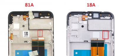 Дисплеи имеют 2 версии на данную модель (81A и 18A). Различия имеются в рамке рядом со шлейфом дисплея. Ознакомьтесь с отличиями в приложенном изображении.