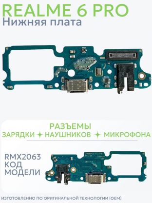 Запчасти для телефонов: Нижняя плата для Realme 6 Pro (RMX2063, OEM с компонентами) с разъемами зарядки, наушников и микрофоном