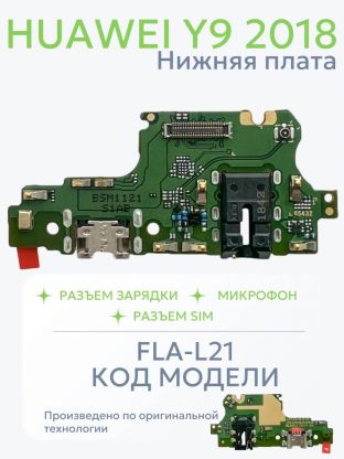 Нижняя плата с разъемами зарядки, наушников и микрофоном для Huawei Y9 2018 (OEM)