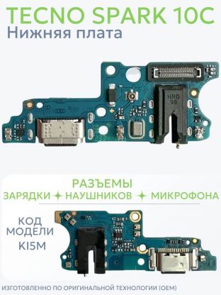 Нижняя плата для Tecno Spark 10C (KI5m, OEM) с разъемами зарядки, наушников и микрофоном