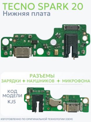 Нижняя плата для Tecno Spark 20 (KJ5, OEM) с разъемами зарядки, наушников и микрофоном